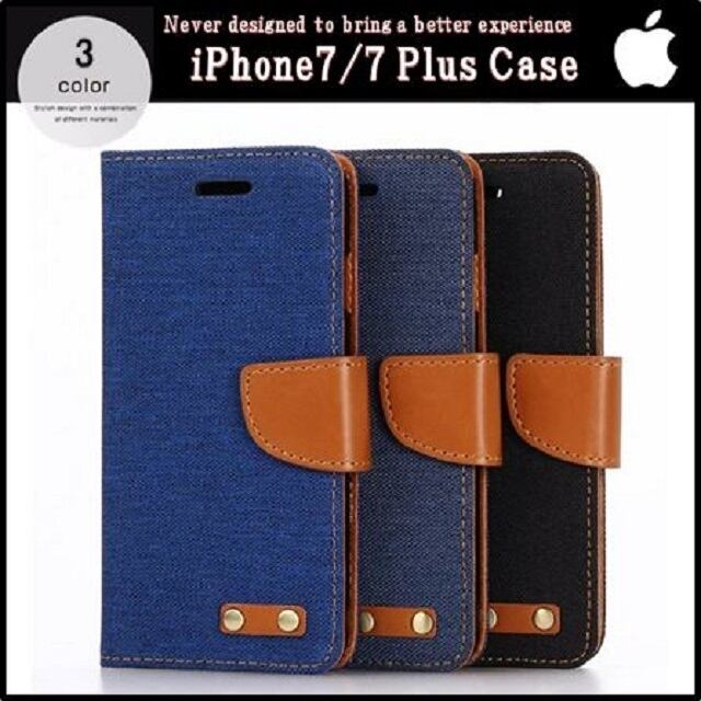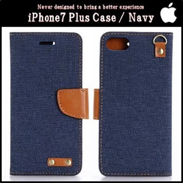 iPhone7 Plus 5.5インチ おしゃれ 手帳型 スマホ ケース キャンバス生地 カバー (ネイビー)