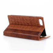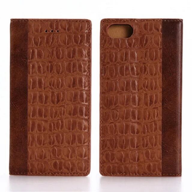 iPhone7 Plus 5.5インチ ケース クロコ調 手帳型 スマホ ケース クロコダイル PUレザー カバー (ブラウン)