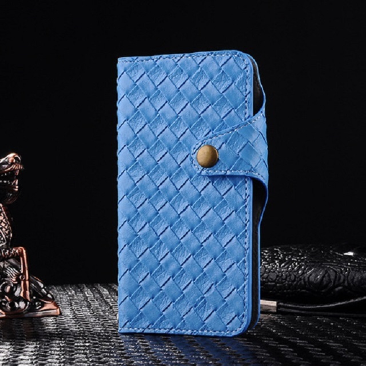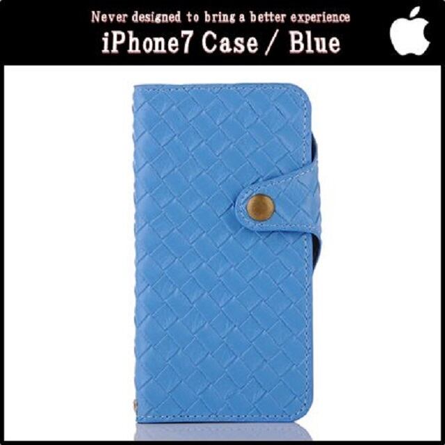 iPhone7 4.7インチ ケース 編み込み 手帳型 スマホ ケース おしゃれ PUレザー カバー (ブルー)