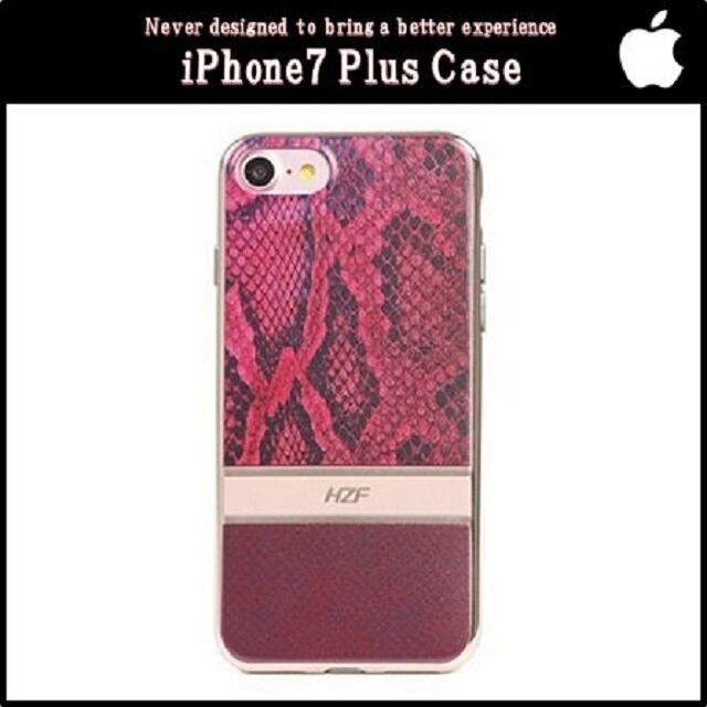 iPhone7 Plus 5.5インチ ヘビ柄 おしゃれ スマホ ケース 衝撃吸収 TPU カバー (ゴールド×レッド)