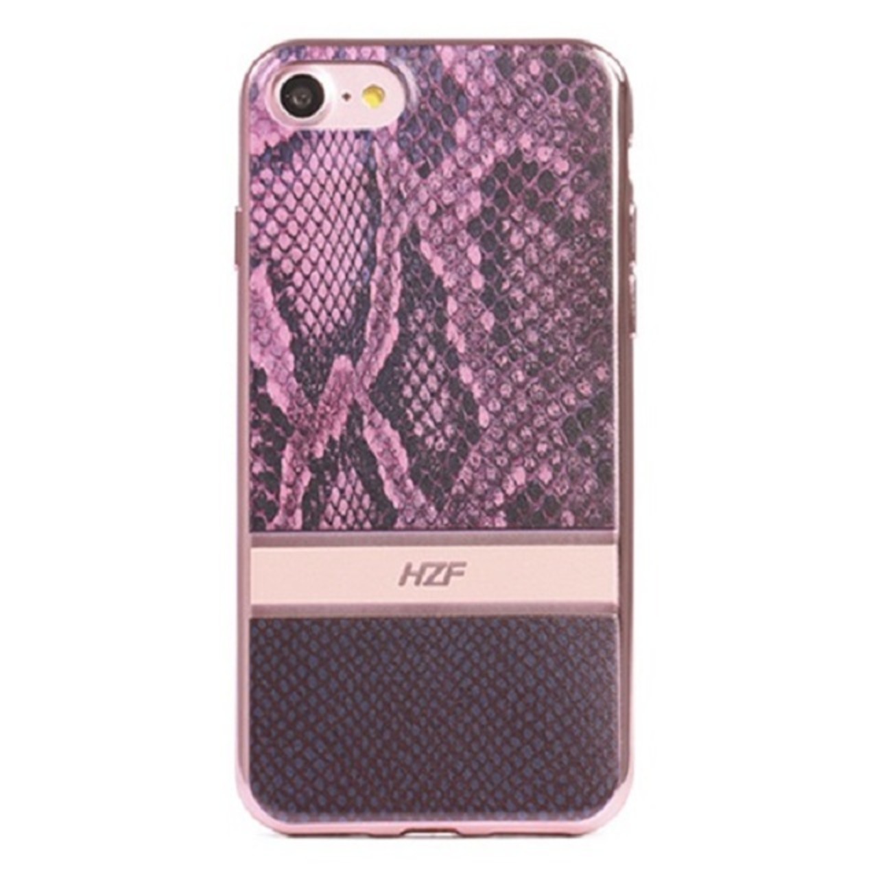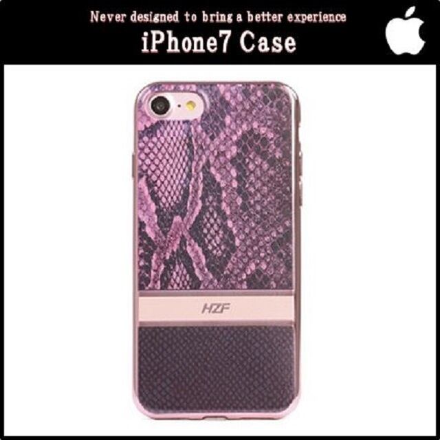 iPhone7 4.7インチ ヘビ柄 おしゃれ スマホ ケース 衝撃吸収 TPU カバー (ローズゴールド×ブラウン)