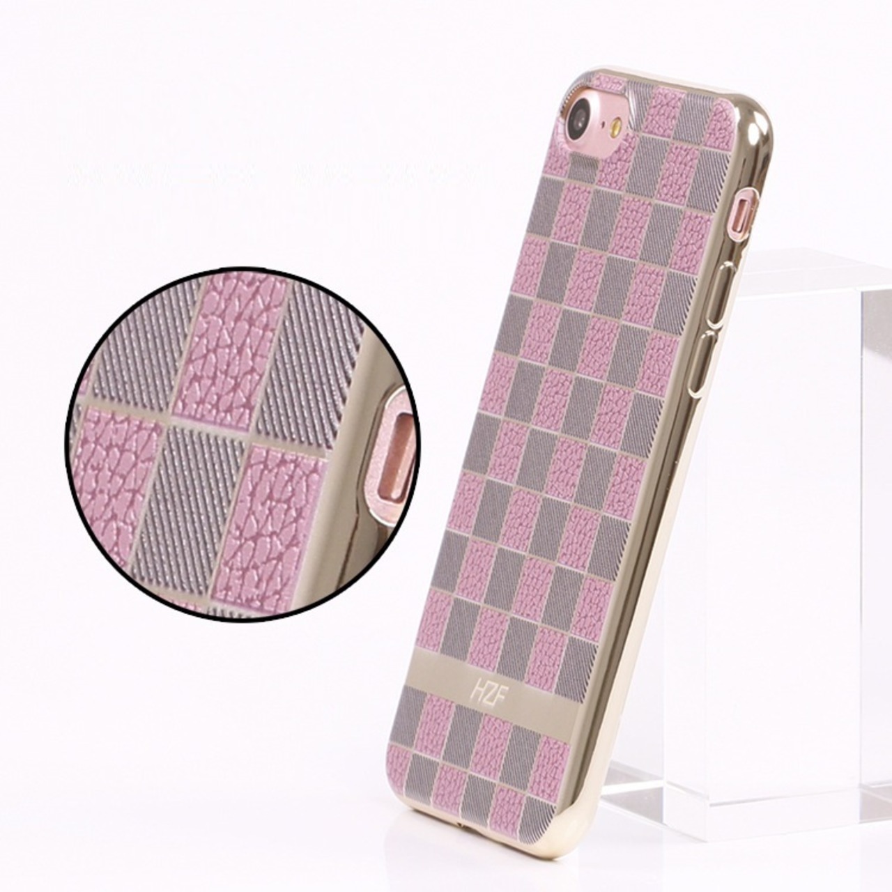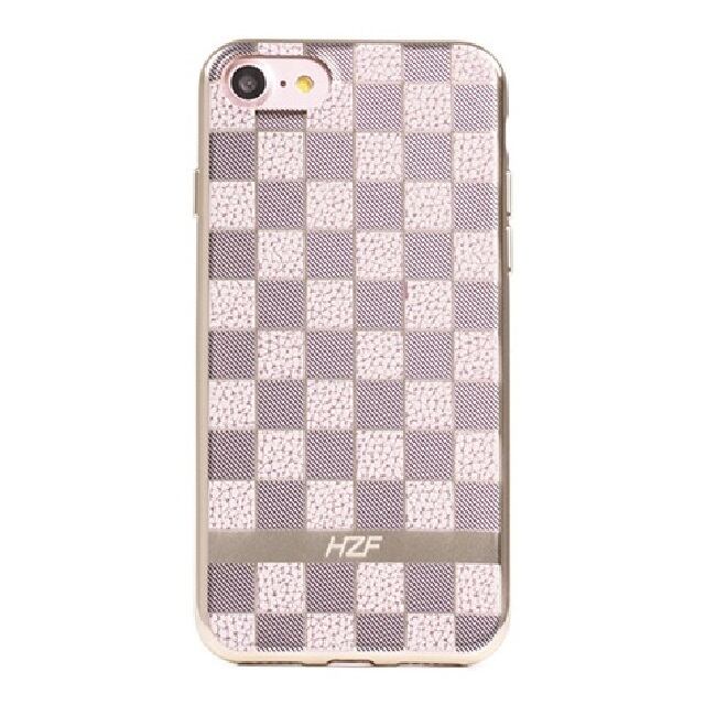 iPhone7 4.7インチ 市松模様 ソフト スマホ ケース チェック TPU カバー ( ゴールド×ホワイト )