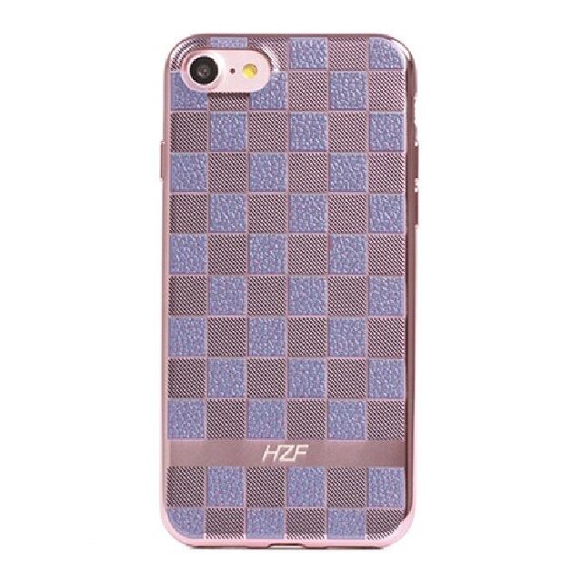 iPhone7 4.7インチ 市松模様 ソフト スマホ ケース チェック TPU カバー ( ローズゴールド×ブルー )