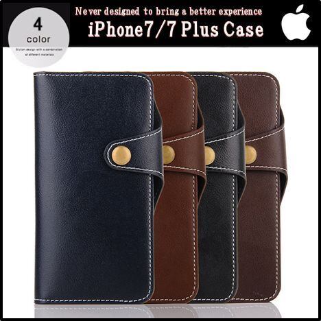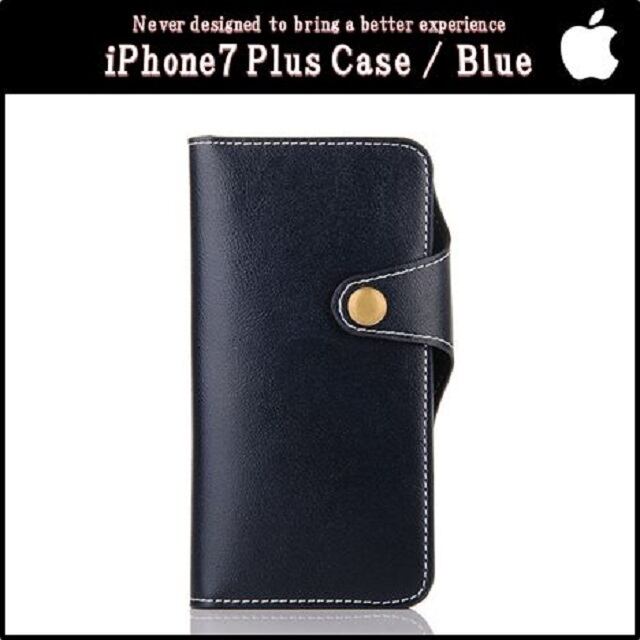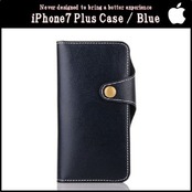 iPhone7 Plus 5.5インチ ケース シンプル 手帳型 スマホ ケース おしゃれ PUレザー カバー (ブルー)