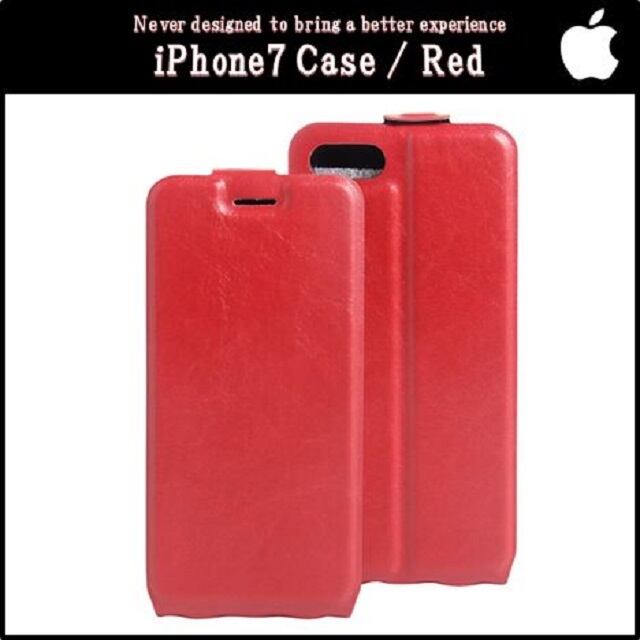 iPhone7 4.7インチ ケース 手帳型 縦開き おしゃれ スマホ ケース PUレザー カバー (レッド)