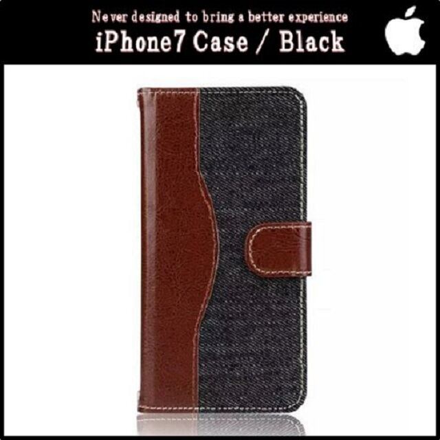 iPhone7 4.7インチ 手帳型 スマホ ケース PUレザー キャンバス生地 カバー (ブラック)