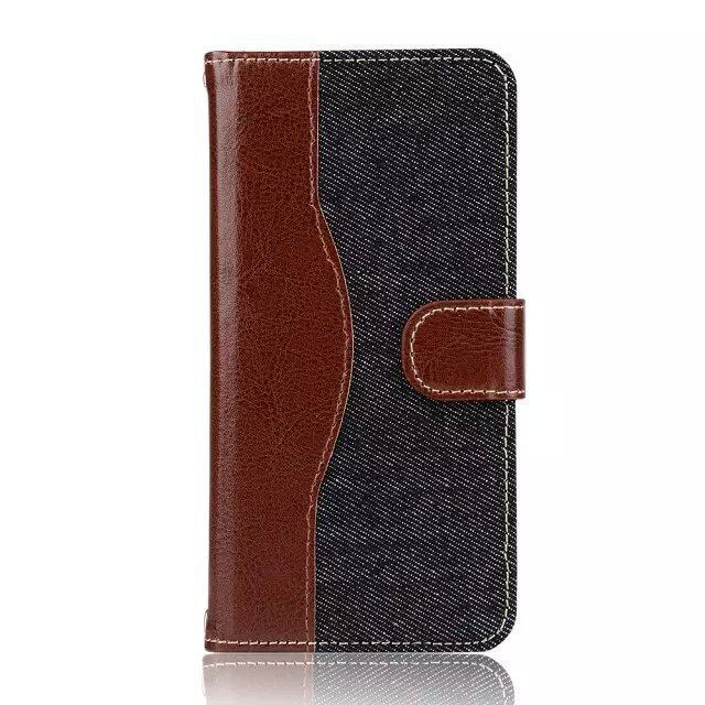 iPhone7 Plus 5.5インチ 手帳型 スマホ ケース PUレザー キャンバス生地 カバー (ブラック)