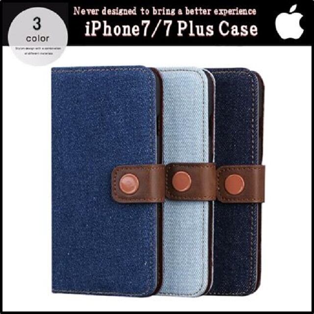 iPhone7 Plus 5.5インチ 手帳型 スマホ ケース キャンバス生地 PUレザー カバー (ホワイト)