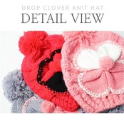 大人気!!クローバーとボンボン付きのニット帽子☆