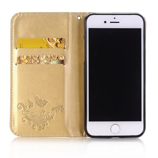 iPhone7 Plus 5.5インチ 手帳型 スマホ ケース 花×蝶々 シンプル 刺繍 デザイン PUレザー カバー ( グレー )