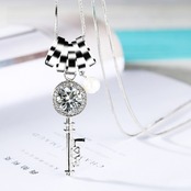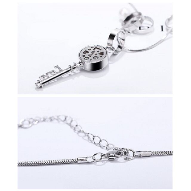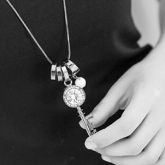 LOVE KEY ロング ネックレス パール 付き ジルコニア ダイヤ レディース
